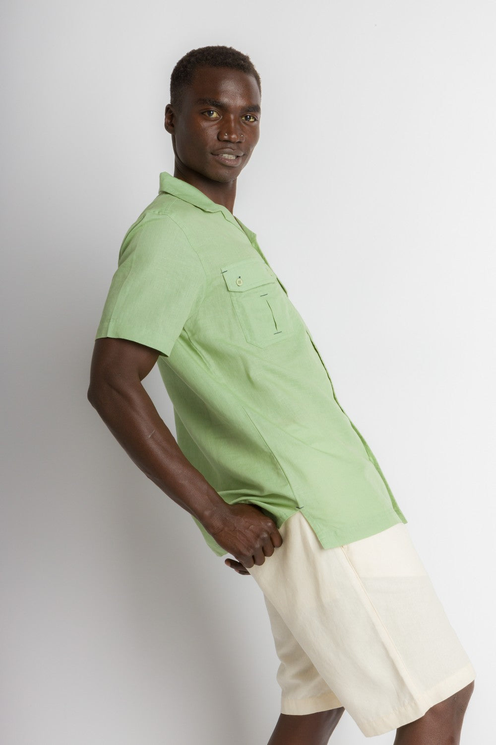 Men's Linen Cotton Blend Short Sleeve Safari Shirt