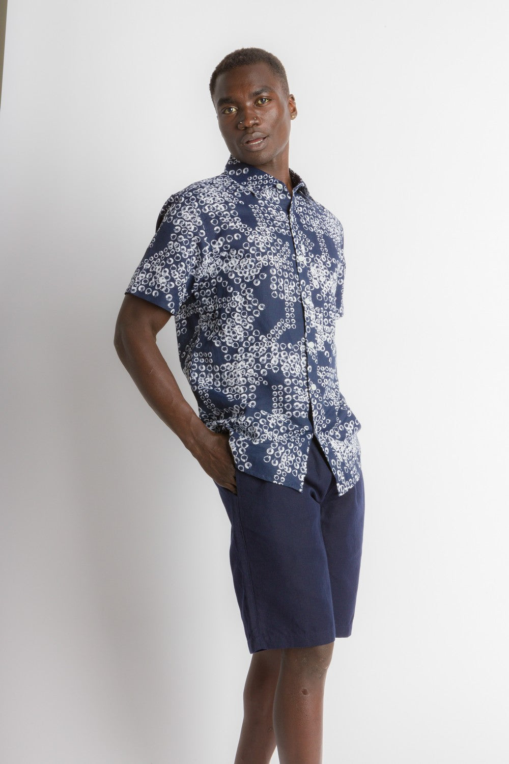Remember “Tiny Bubbles”, well we did and designed a shirt to pay homage to Don Ho. 55% cotton 45% linen blended woven. You get the best of cotton durability and the feel of linen. Navy blue background with white bubble effervescing throughout the shirt. Pair it with a pair of Ably pants or shorts for your beach club vibe.