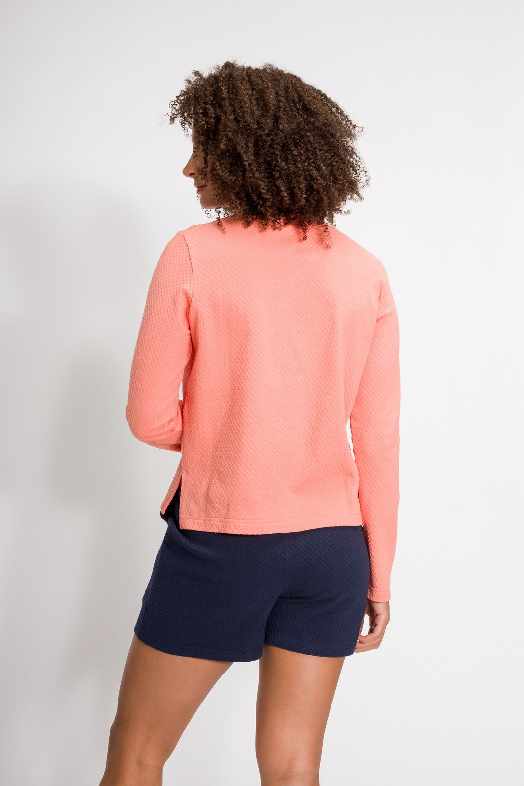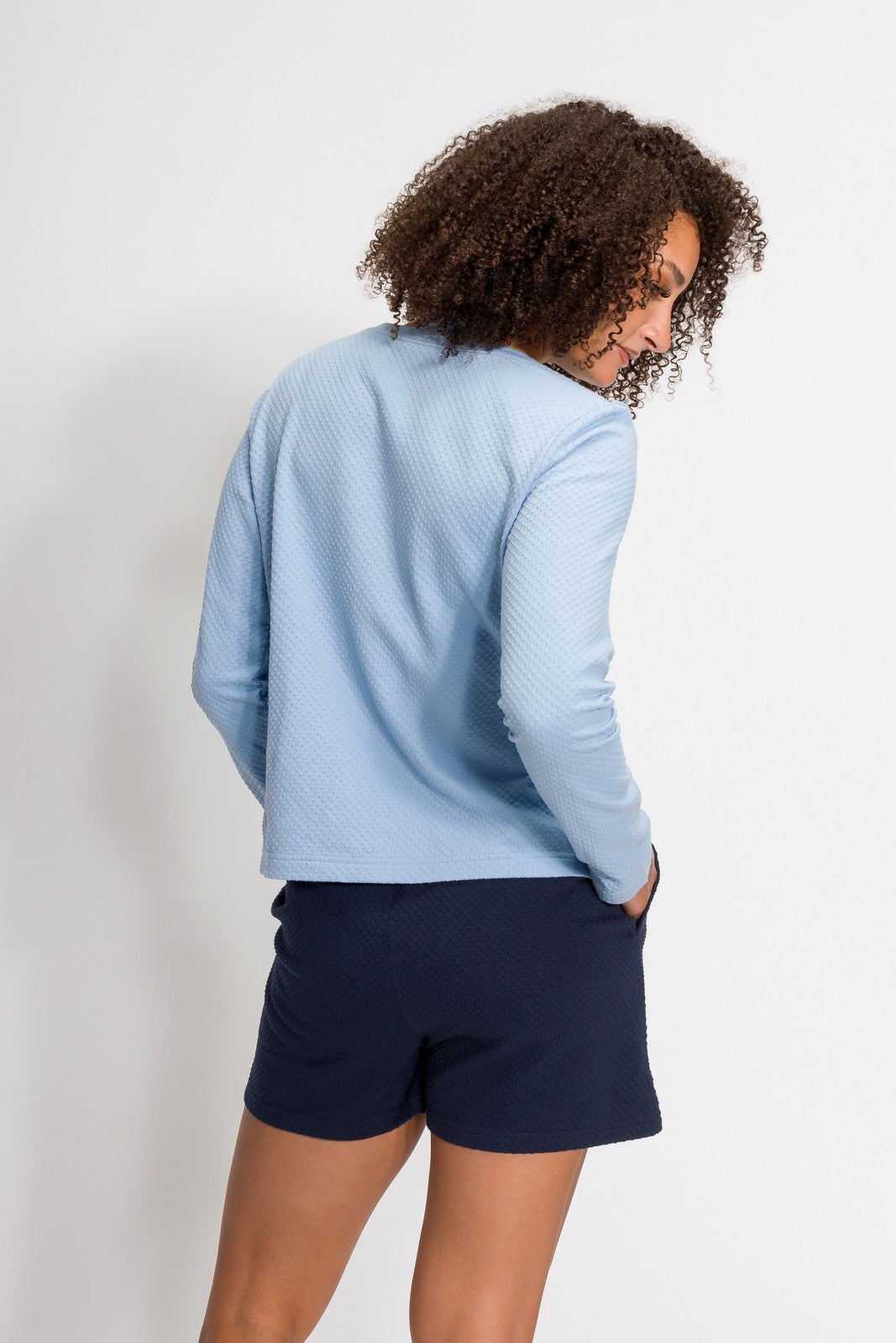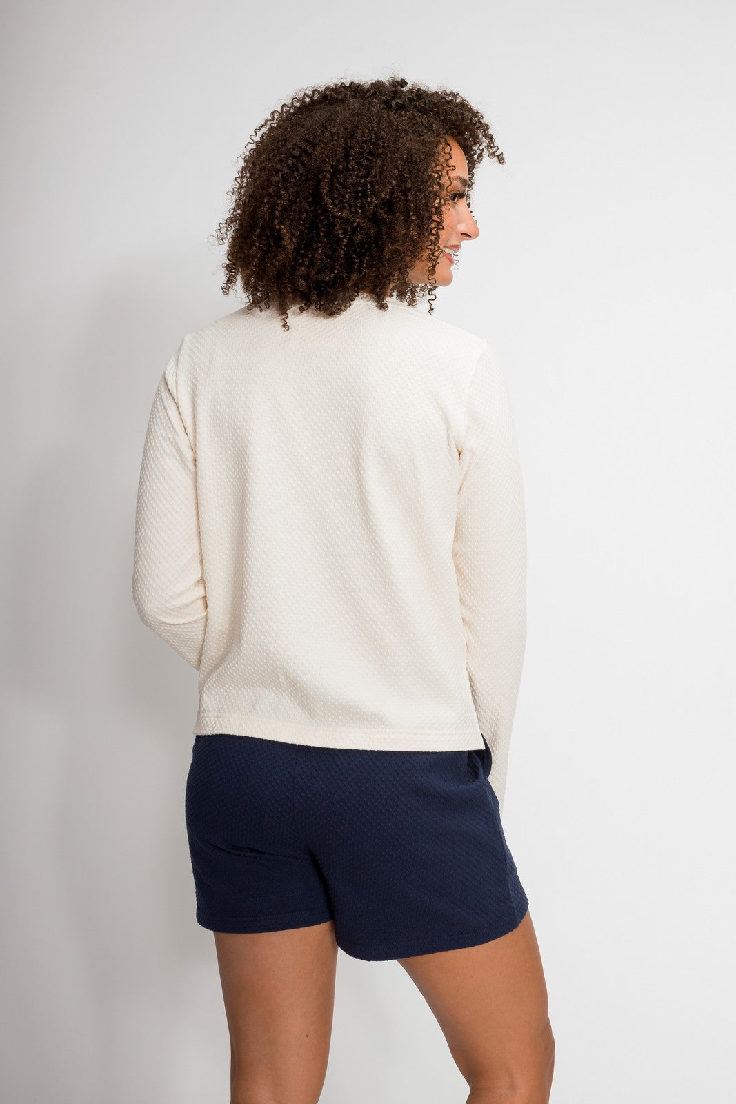 The Emma Crew Neck sweatshirt is our modern take on the classic crewneck. The fresh cropped cut won’t drown out your figure and will surely compliment all body types. The charm of the Emma Crew Neck is all in the details. Emma’s stand out Bubble knit texture will guarantee a spot in your frequently worn favorites. Enjoy the comfort and durability without the worry, it’s Filium® activated fabric that will repel liquids, stains, and odors keeping you clean and fresh for days.