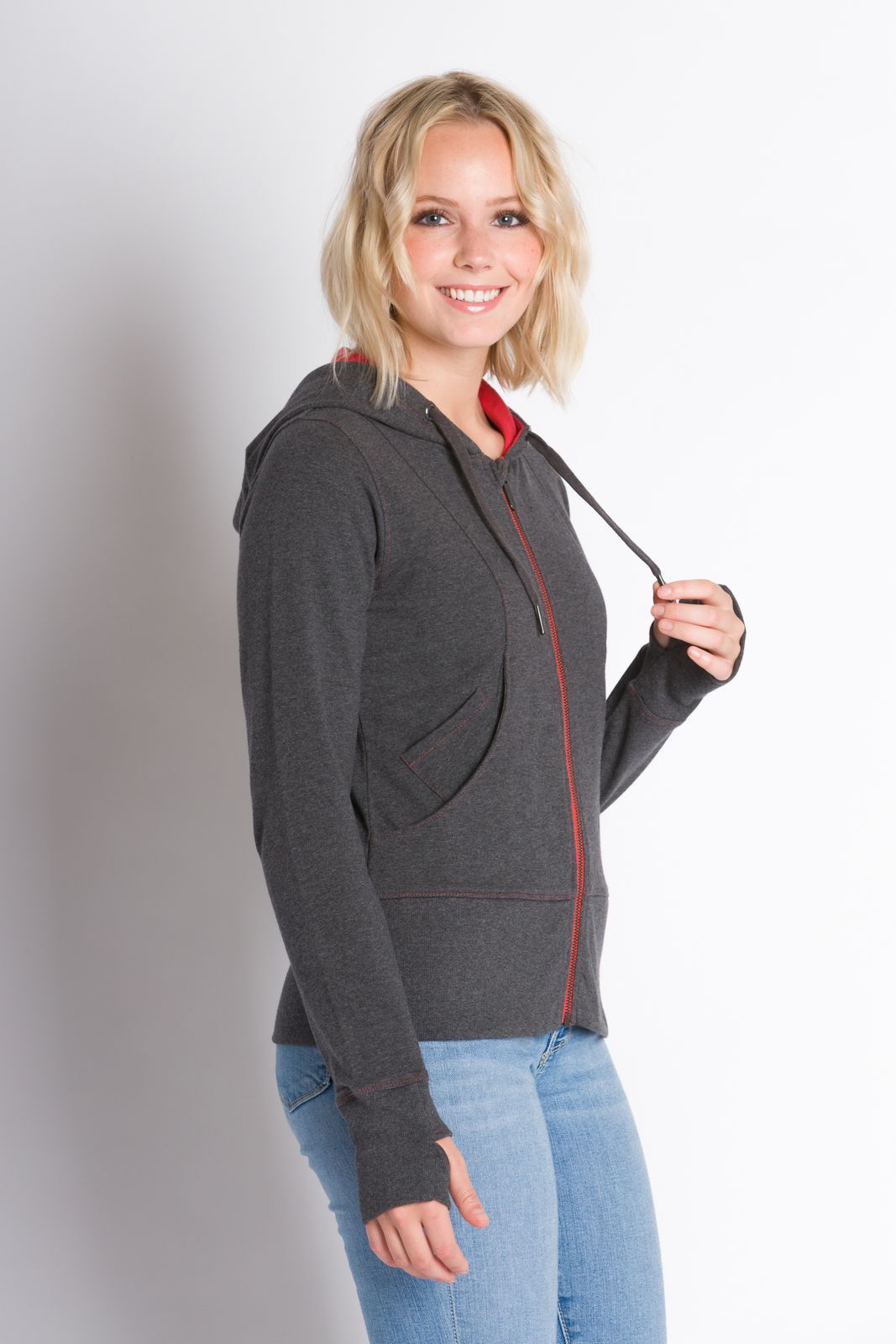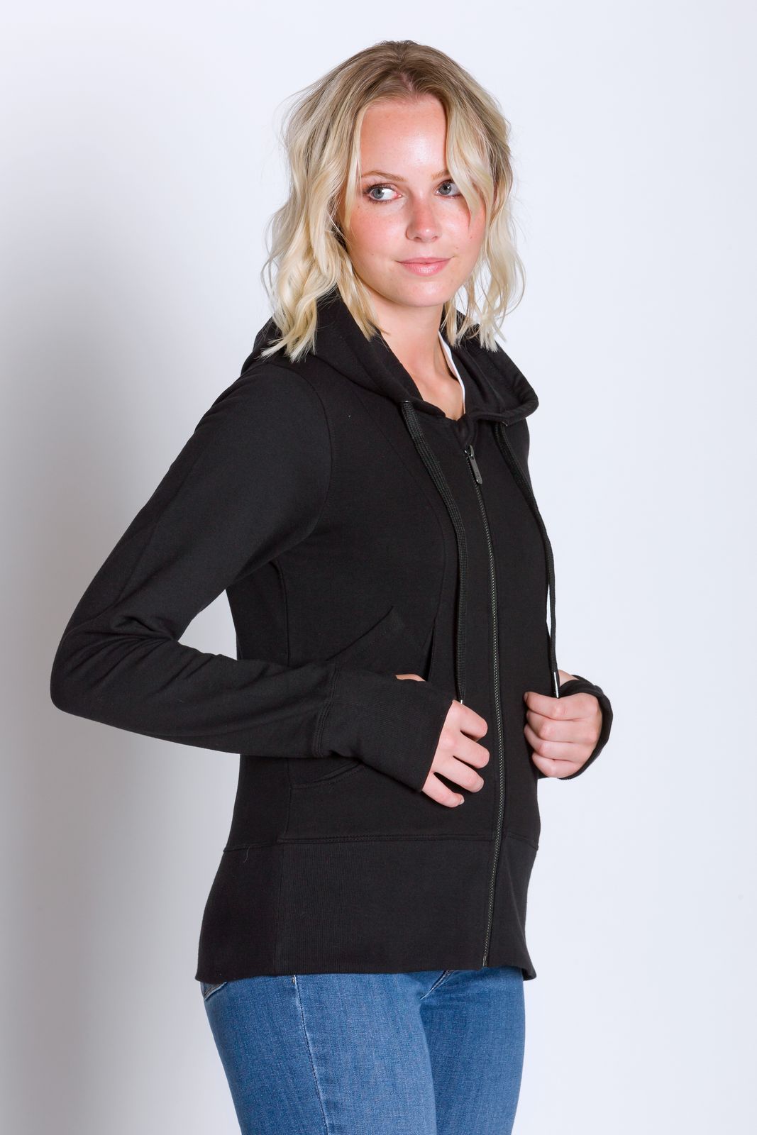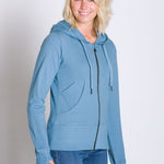Never sacrifice your music for a run again. The Yasmin zip up sweatshirt features a pocket specifically designed to fit your phone to stay connected and safe at all times. Made out of our lightweight cotton French terry, breathability and flexibility are our main goals. A drawstring hood and thumbholes will keep you fitted and comfortable all day long. Its Filium® activated fabric will repel liquids, stains, and odors keeping it clean and fresh for days