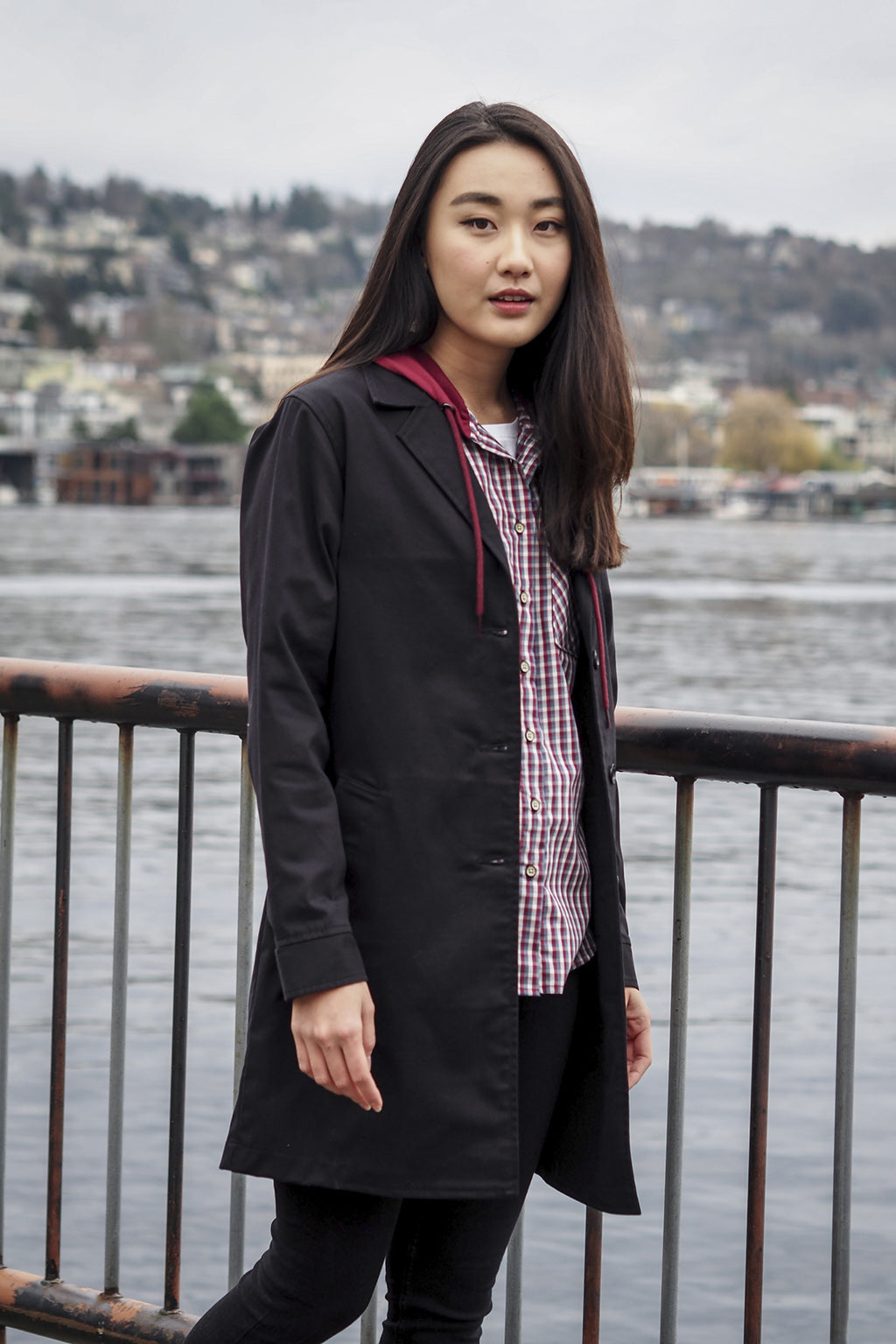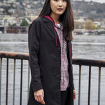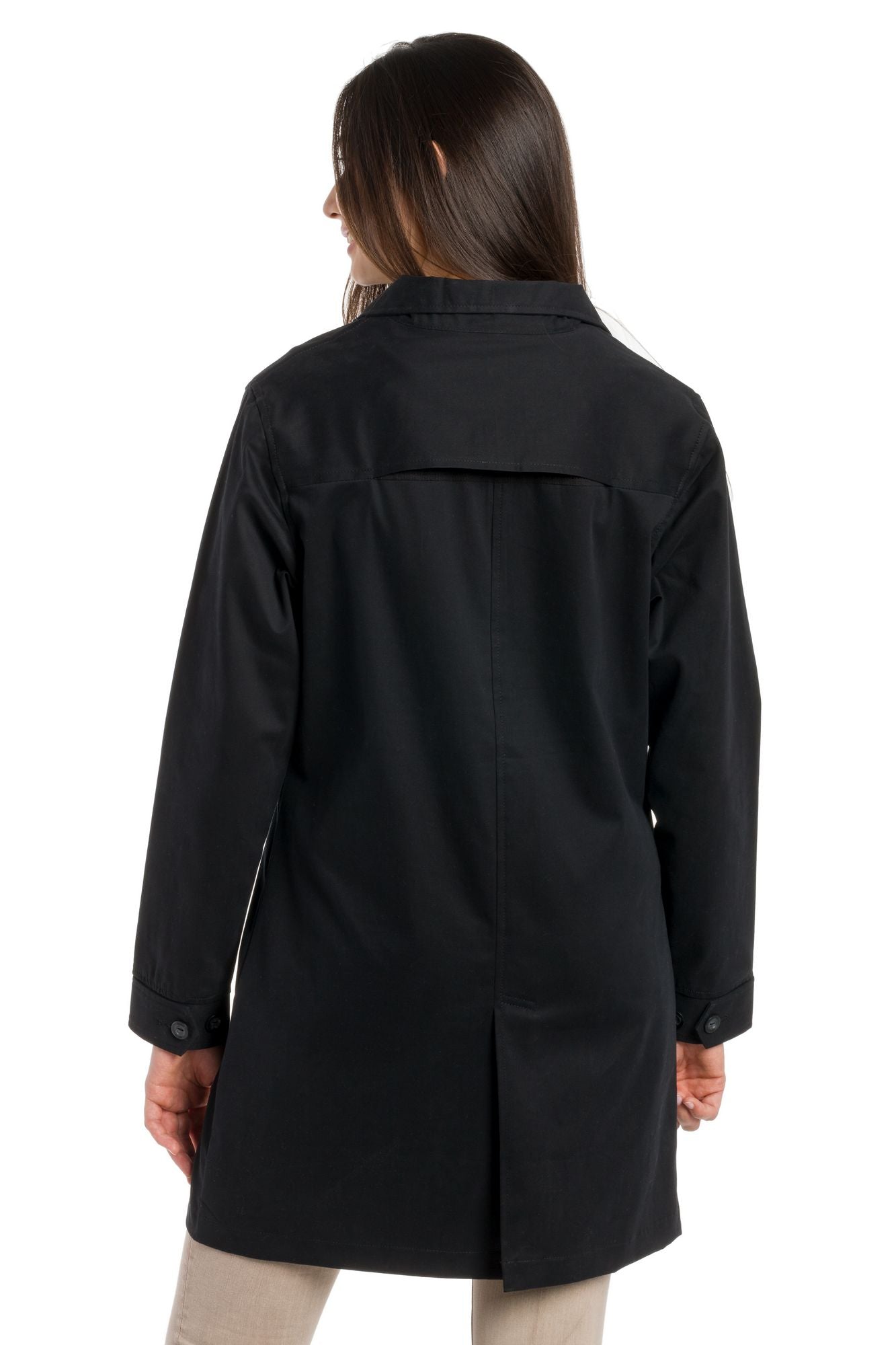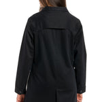 Feel like a movie star in the Cyrene woven jacket. This black jacket features sleek design details including a back vent, buttons at sleeve cuff, and three buttons down the middle. Throw it on for a rainy night in the city, or completely elevate your streetwear. Its Filium® activated fabric will repel liquids, stains, and odors keeping you clean and fresh for days.