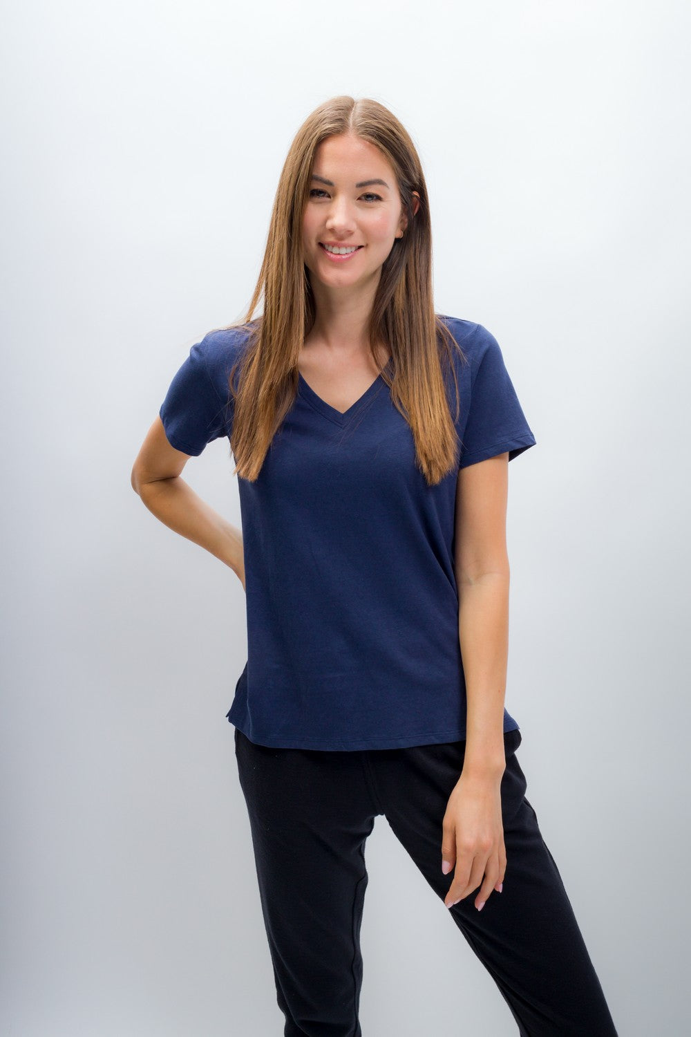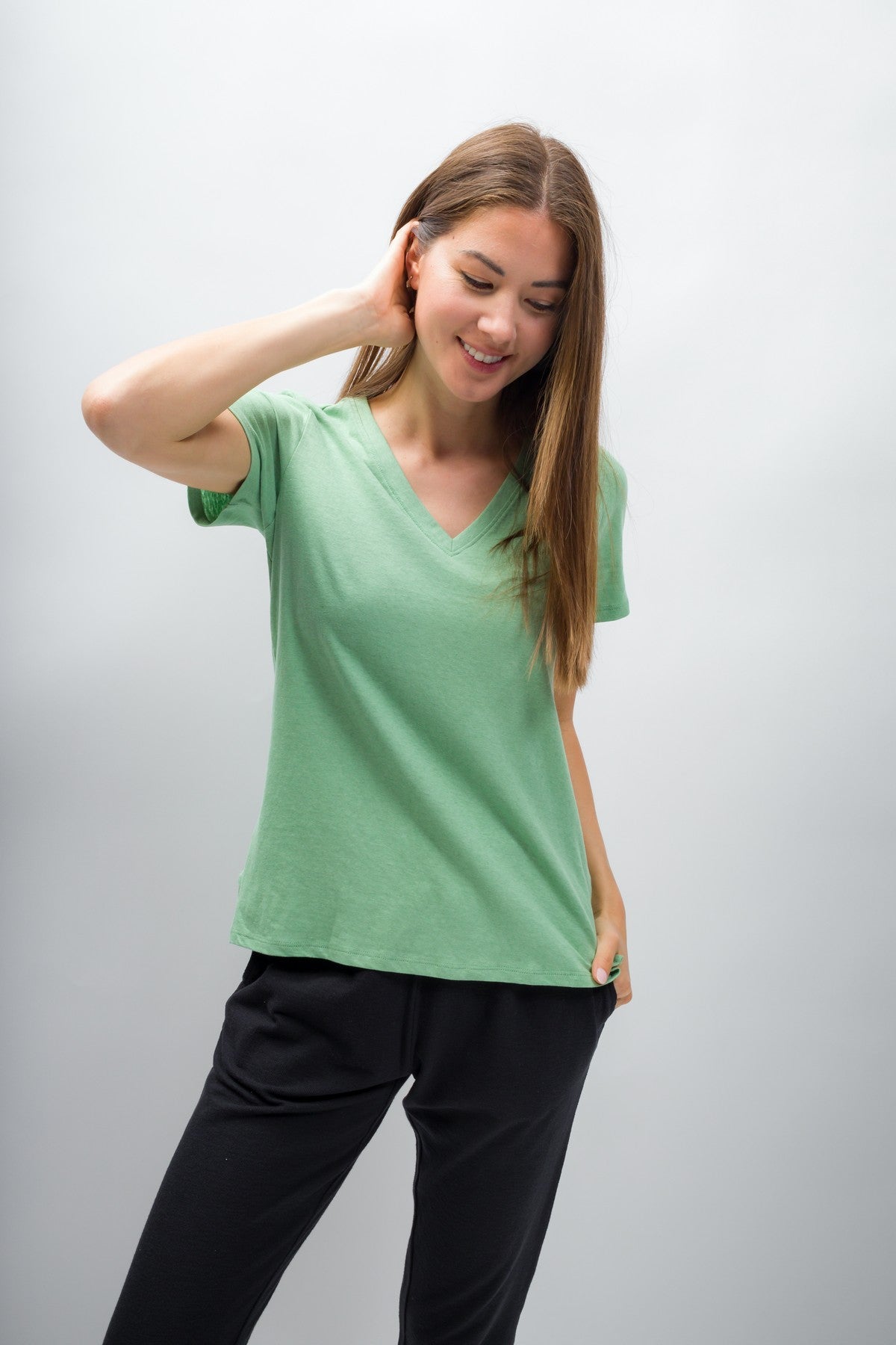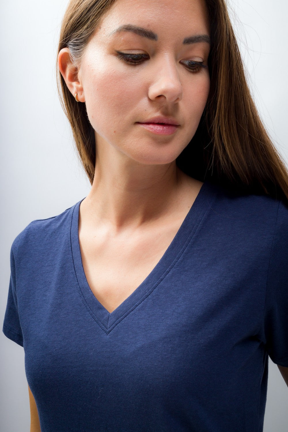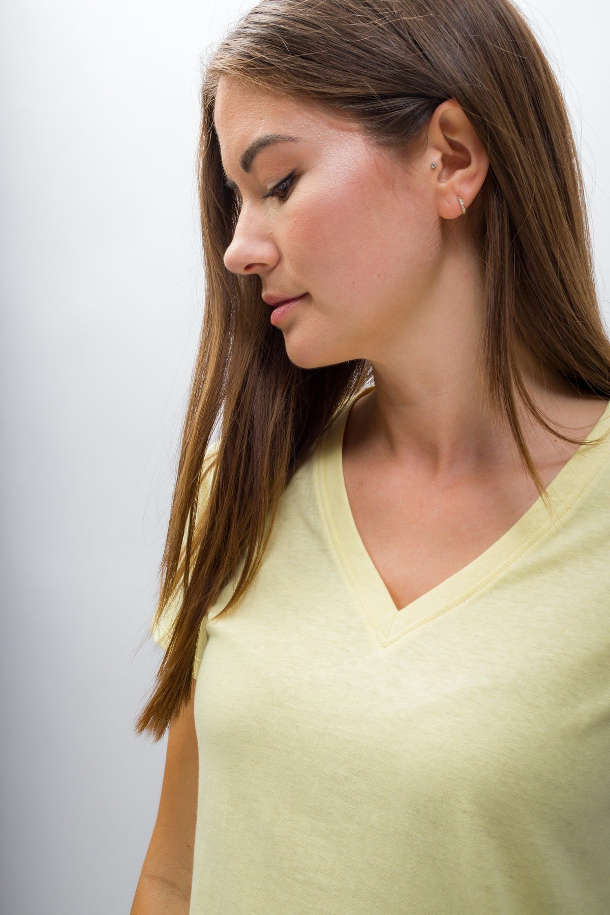 Scarlett | Women's Anti-Stain Linen Cotton Blend V-Neck T-Shirt