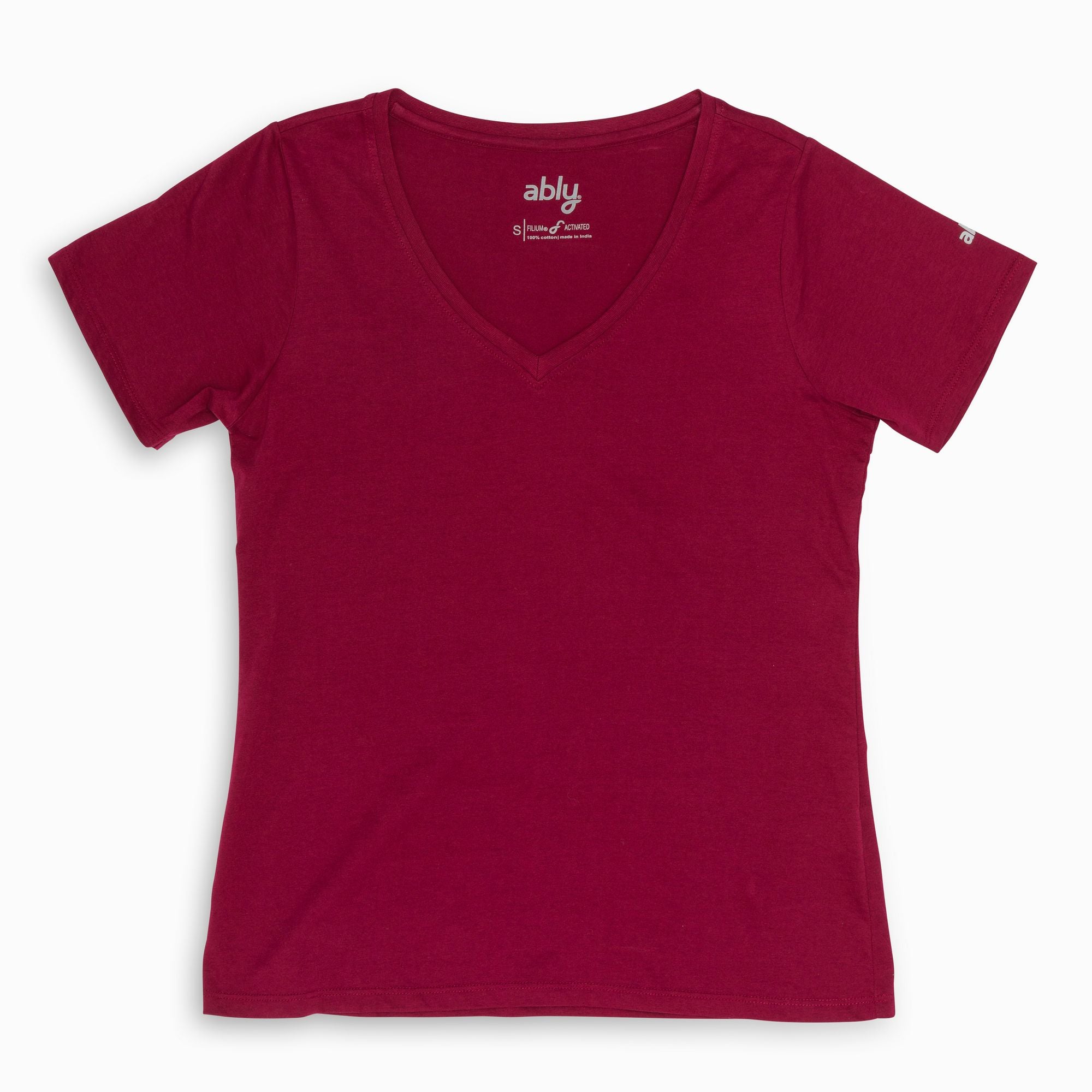 The deep v-neck that launched a thousand ships, Vanessa's made quite the name for herself. Okay, yes, that may have been someone else, but this v-neck tee will turn heads everywhere it goes--be it your morning spin glass or happy hour drinks with the girls. And since the 100% premium cotton is Filium® activated, you can work up a sweat or raise your glass knowing you won't take any unwanted scents or stains with you.