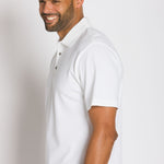 A classic polo style made with soft pique and a flat rib collar. Detailed with side vents and a reinforced front button placket.