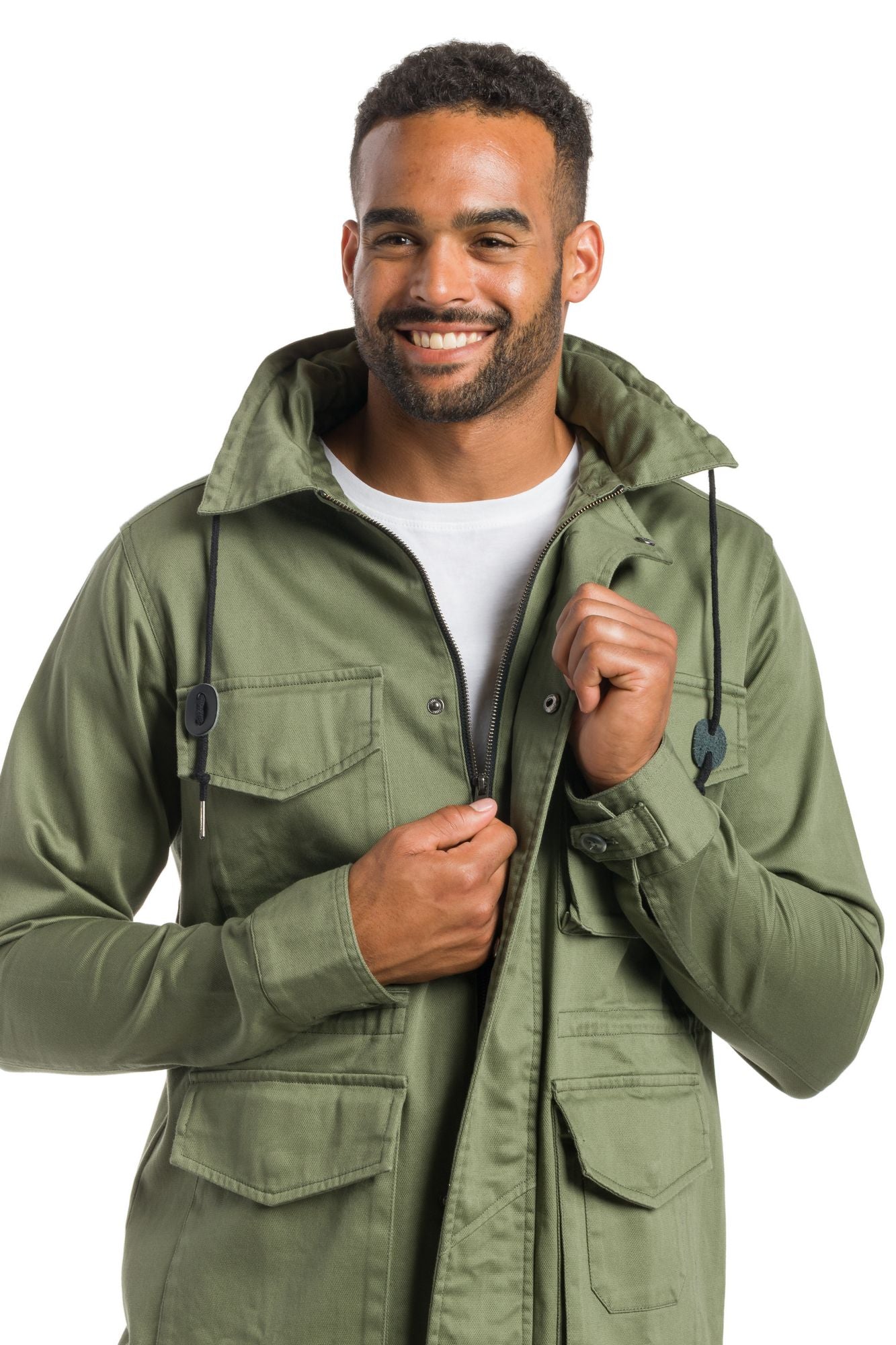 Face the elements head-on in our Bear heavy textured cotton field jacket. Built to take a beating and look great doing it, this is one piece of outerwear that’s practically loaded with features: snap closure front hand and breast pockets, adjustable interior waist, a zippered hideaway hood—we could go on. But our favorite feature? You’ll love wearing it.