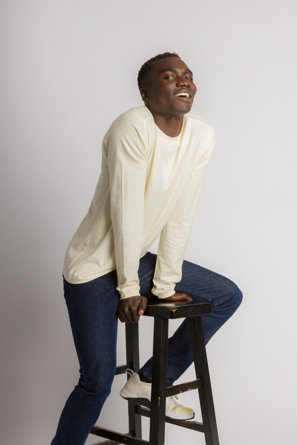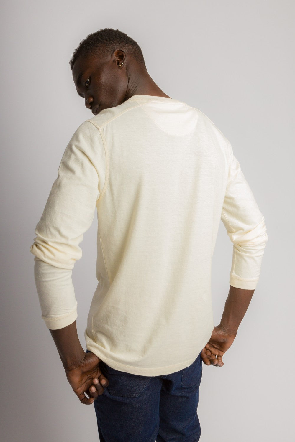We took our iconic long sleeve Douglas and gave him a re-work. A new fabric for fit and comfort, cover stitching details for a little less formal look. Something casual on a cool morning/evening but not so casual you couldn’t wear it to the theatre.