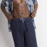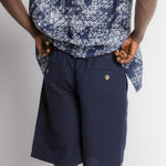 Description:  55% cotton 45% linen woven shorts.  Color matched to the Alvin and Don Ho shirts to give you that put together look for the cabana and beach.  Two on seam front pockets and two rear pockets with buttons.   Elastic waist with a drawstring to keep them up and in place.
