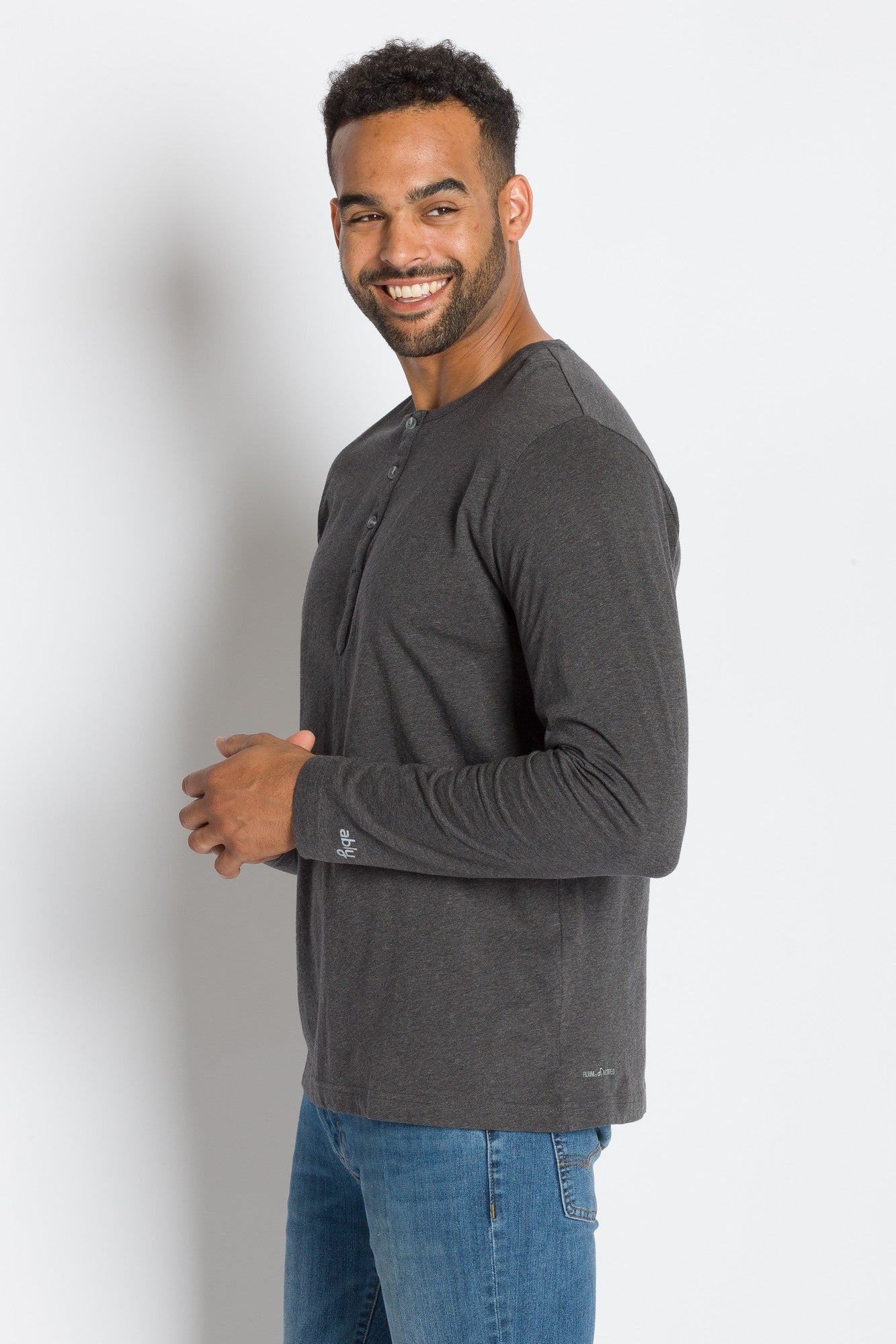 Sure, our long-sleeved Frank Henley is comfortable. Super cozy, as a matter of fact. And, yes, the Filium® activation means you can wear it all day, like, everyday. Which we would totally understand. But the real innovation? Our henley looks good. Slim fitting with a classic three-buttoned style, Frank’s tailor-made to look—and stay—clean. In the gym or on the couch, even we’ve got to admit: Frank’s got a lot going for him.