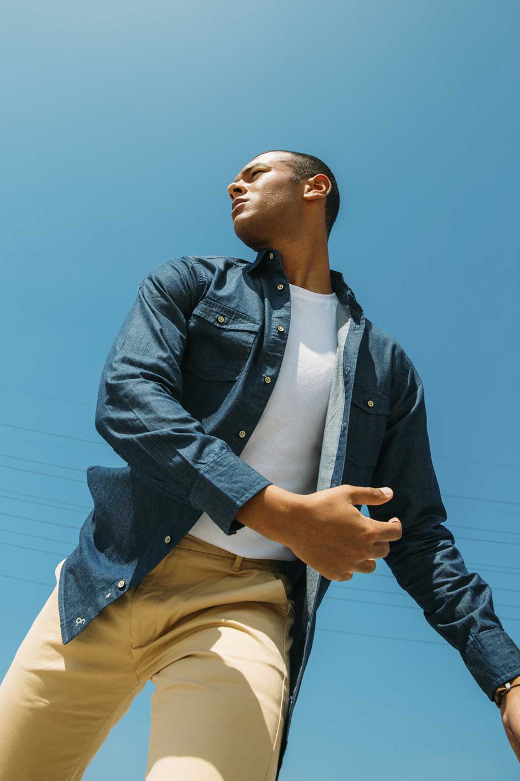 What’s better than a comfortable denim shirt? A comfortable denim shirt that can withstand anything. The Evan denim long sleeve shirt is made with our Filium ® activated cotton, preparing you for whatever adventure awaits. Two front flap pockets and a center front button down adds sophistication, plus its Filium® activated fabric that will repel liquids, stains, and odors keeping you clean and fresh for days.