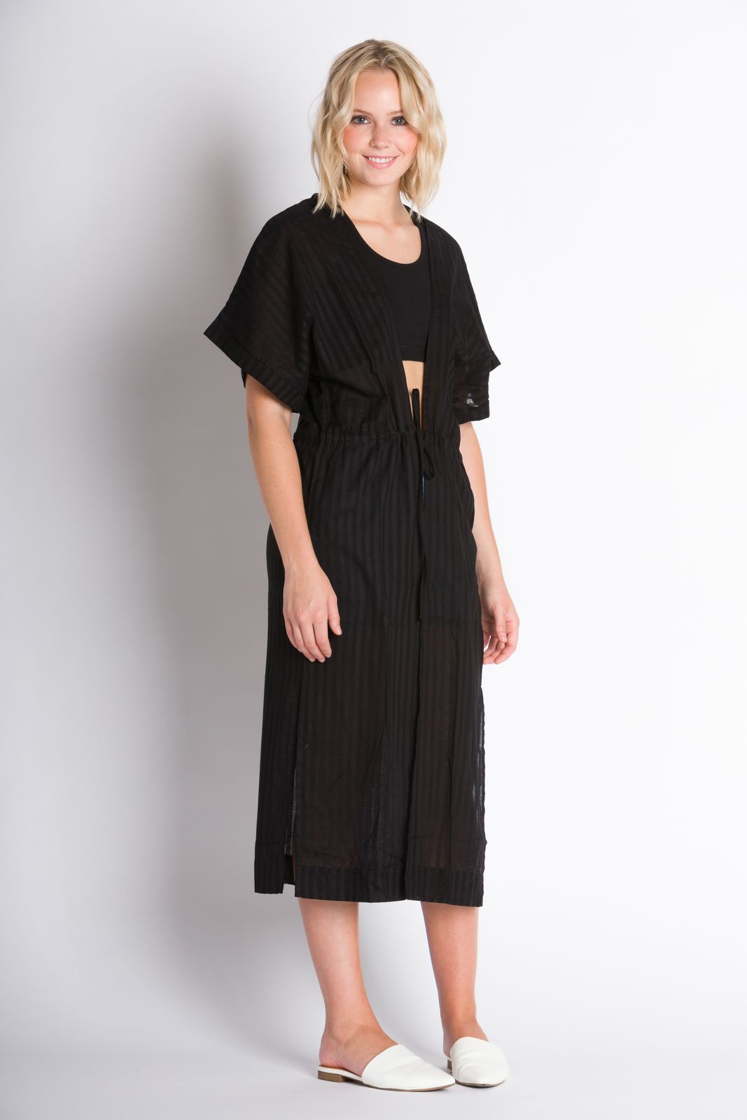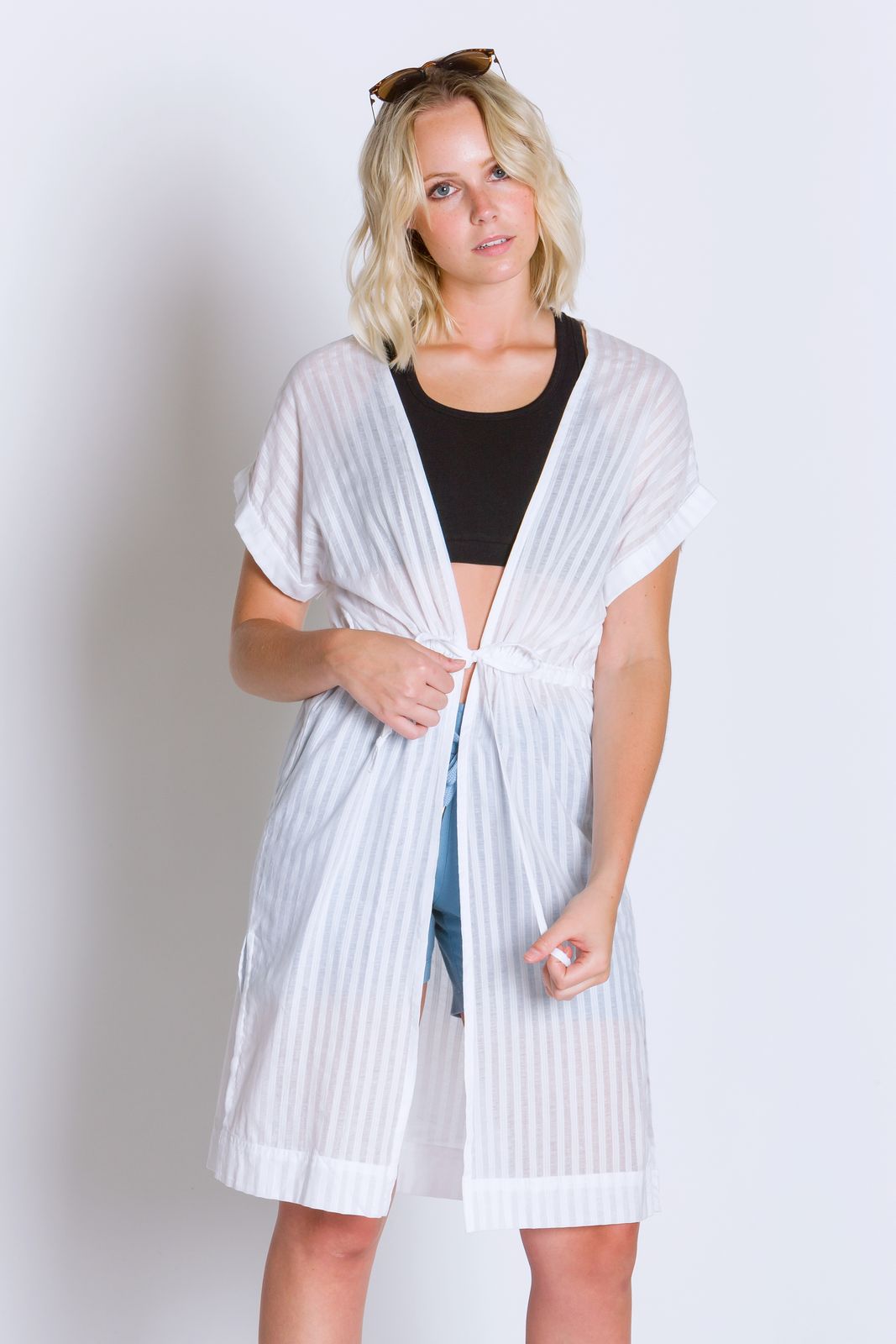 Swim covers are not just limited to the beach anymore. The Bali Hai swim cover can be thrown over yoga pants for class or denim shorts for an afternoon date. Three-quarter length open front design with a waist tie, it is flattering in fit and versatile in style. Don’t be afraid to get wet, its Filium® activated fabric will repel liquids, stains, and odors keeping it clean and fresh for days.