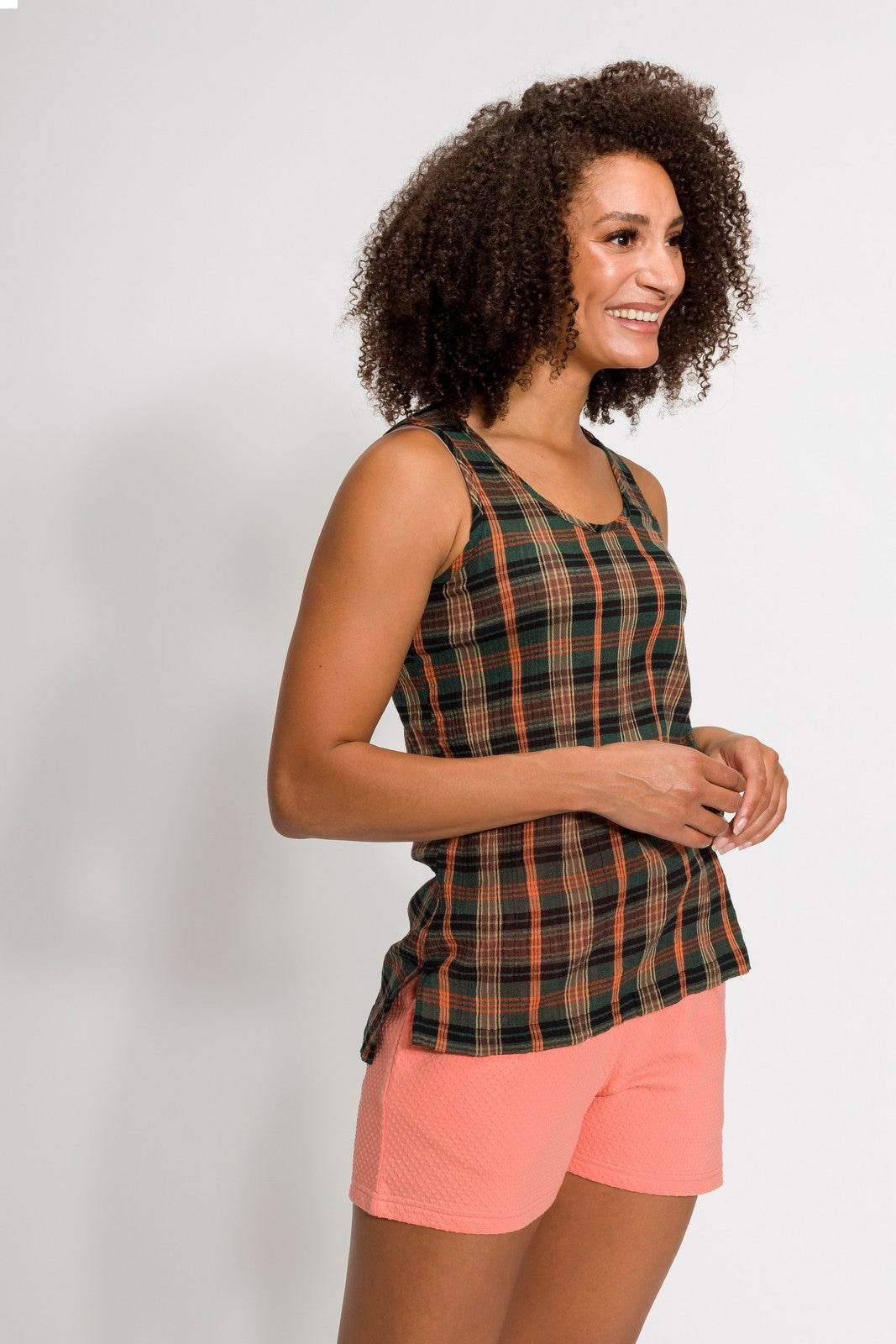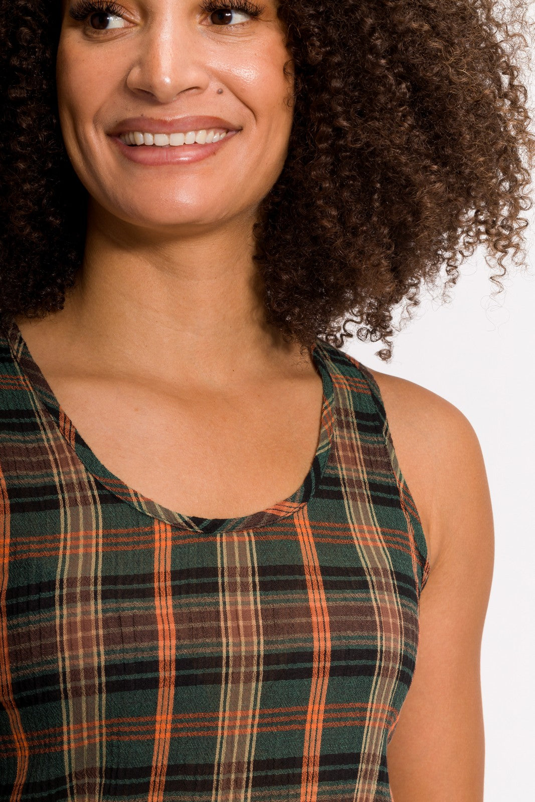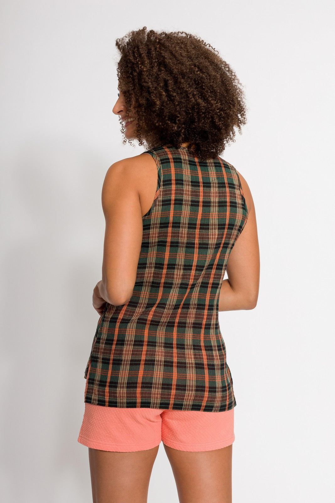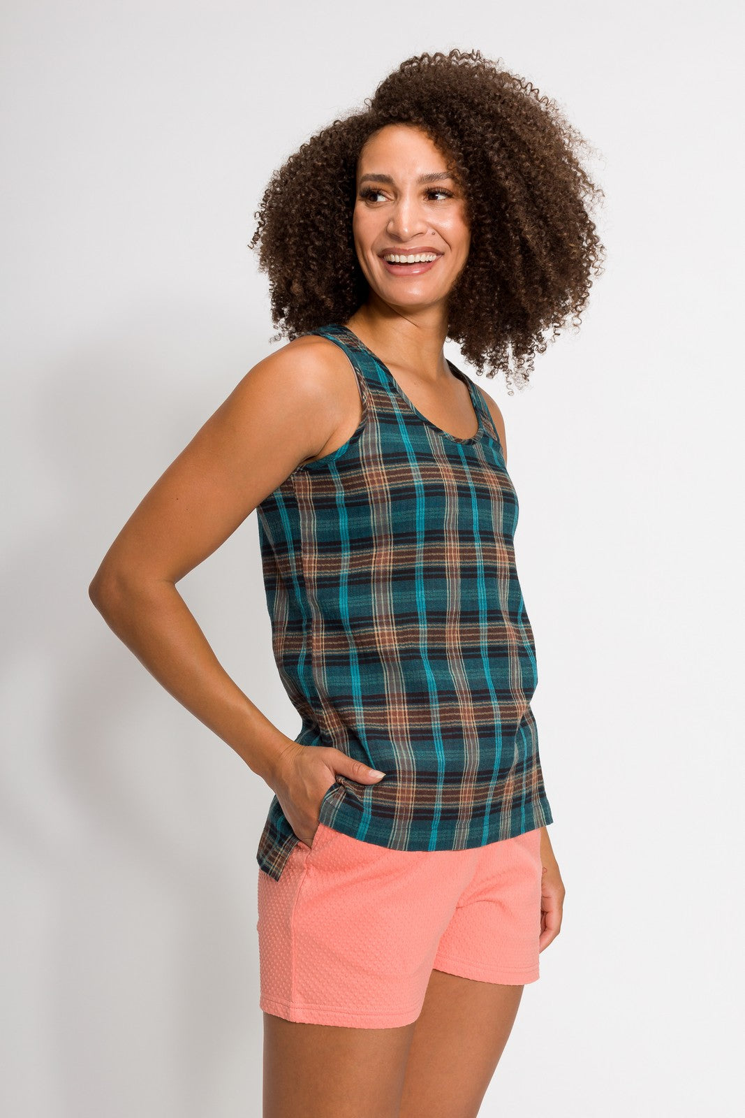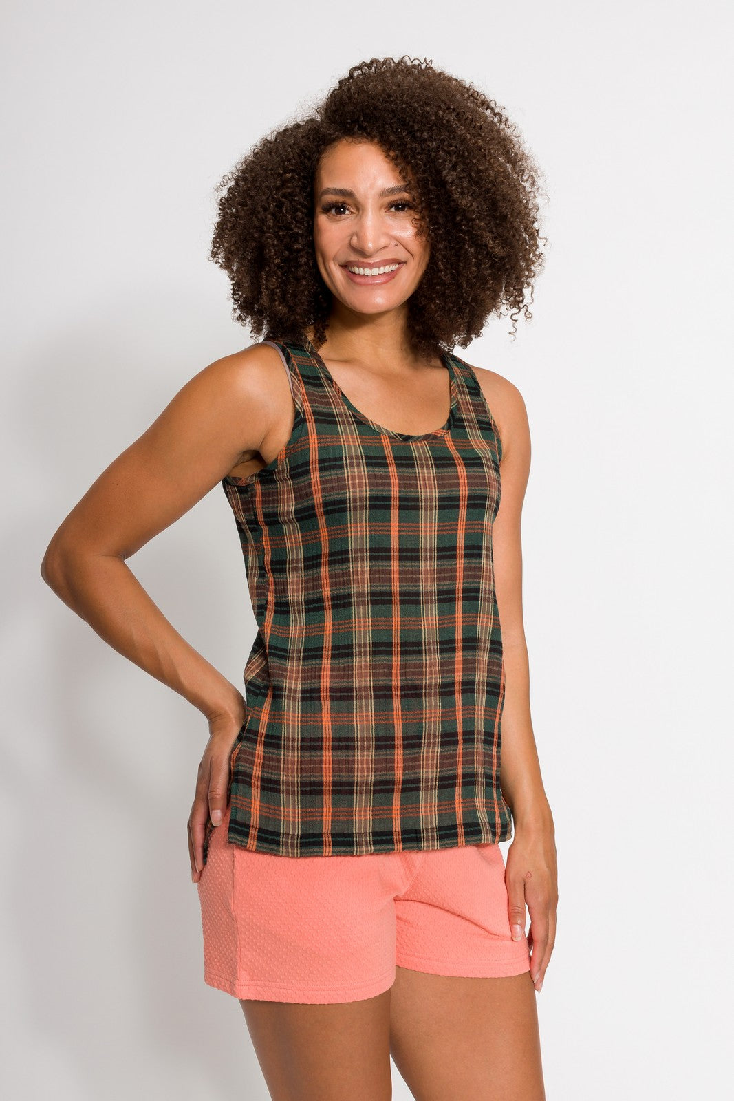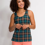 The Meghan plaid scoop neck tank is a nod to a carefree 70’s summer. The featured plaid textile is not only a wave of nostalgia but is reinvented with our easy breezy 100% woven gauze that is a Filium® activated fabric guaranteed to repel liquids, stains, and odors keeping you clean and fresh for days. Can you dig it?