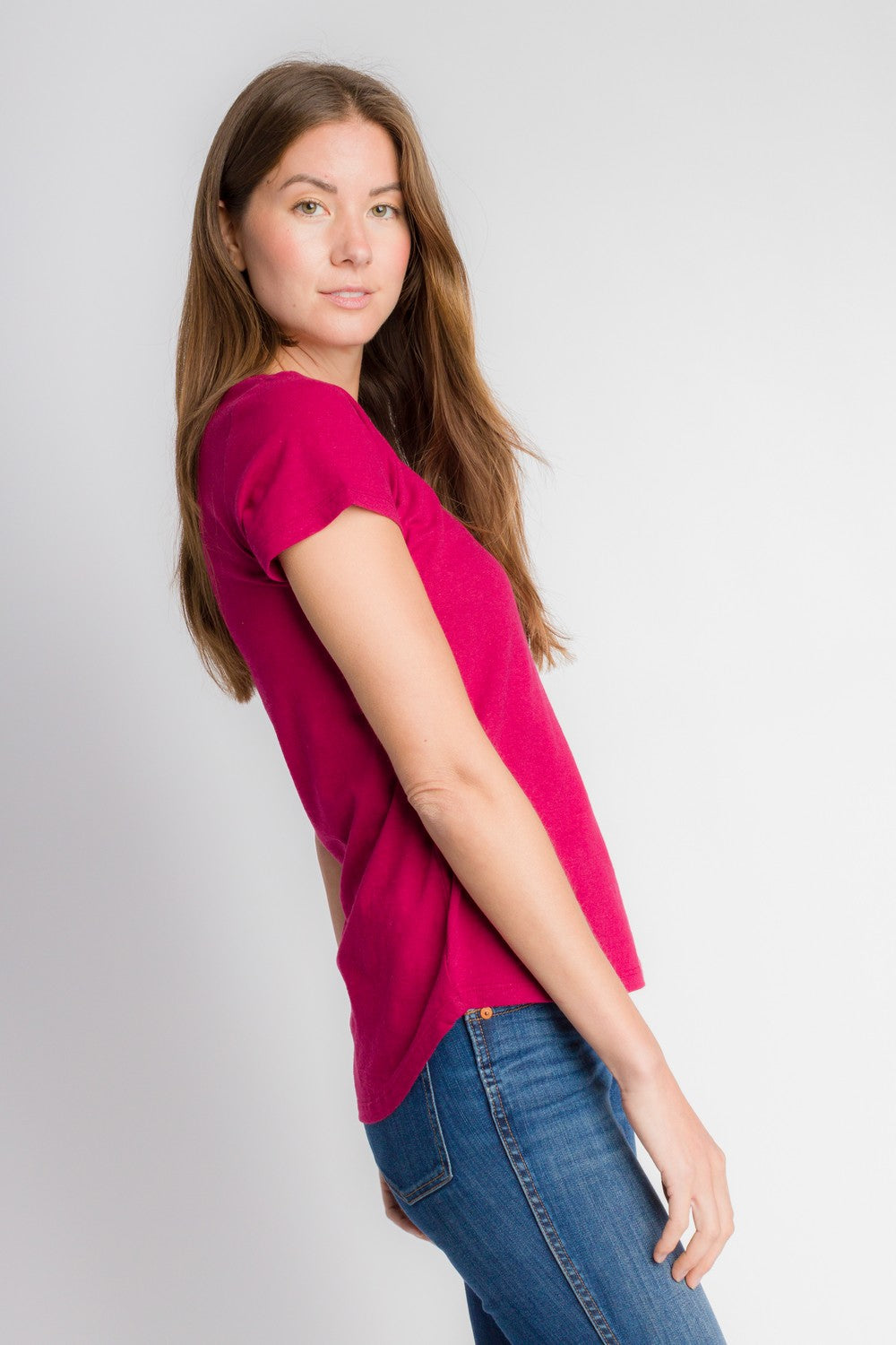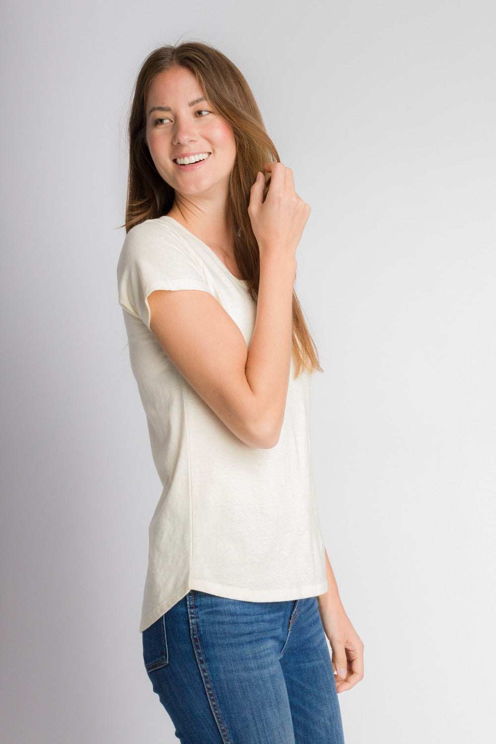 Hope | Women's Anti-Stain Cotton Linen Scoop Bottom Short Sleeve Top
