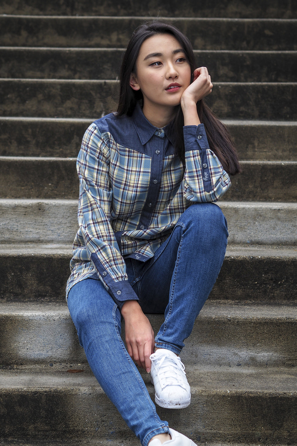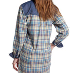 The Cara flannel tunic is a combination of two everlasting trends: plaid and denim. This is a must-have item for anytime of the year. Match it with a pair of jeans – or no pants at all. Its Filium® activated fabric will repel liquids, stains, and odors keeping you clean and fresh for days.