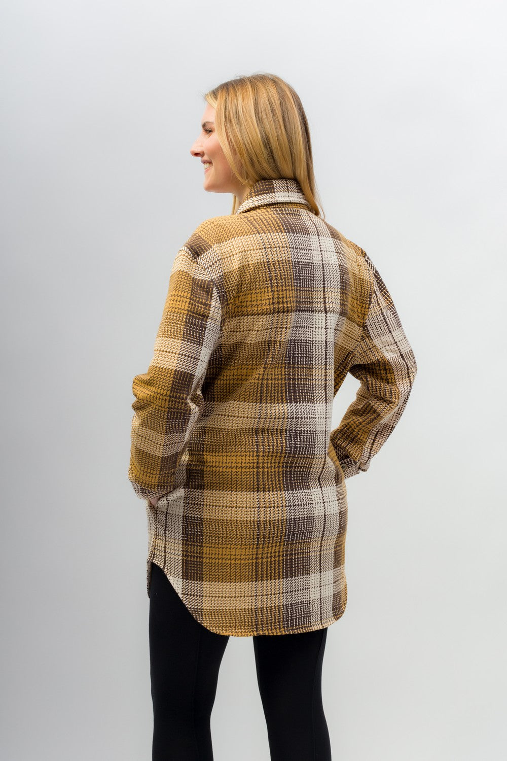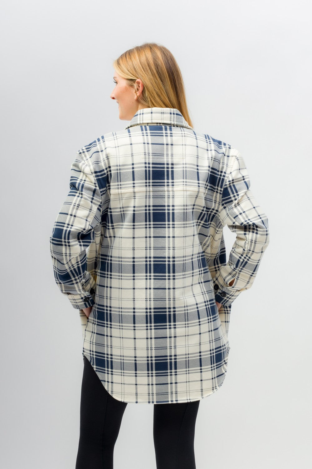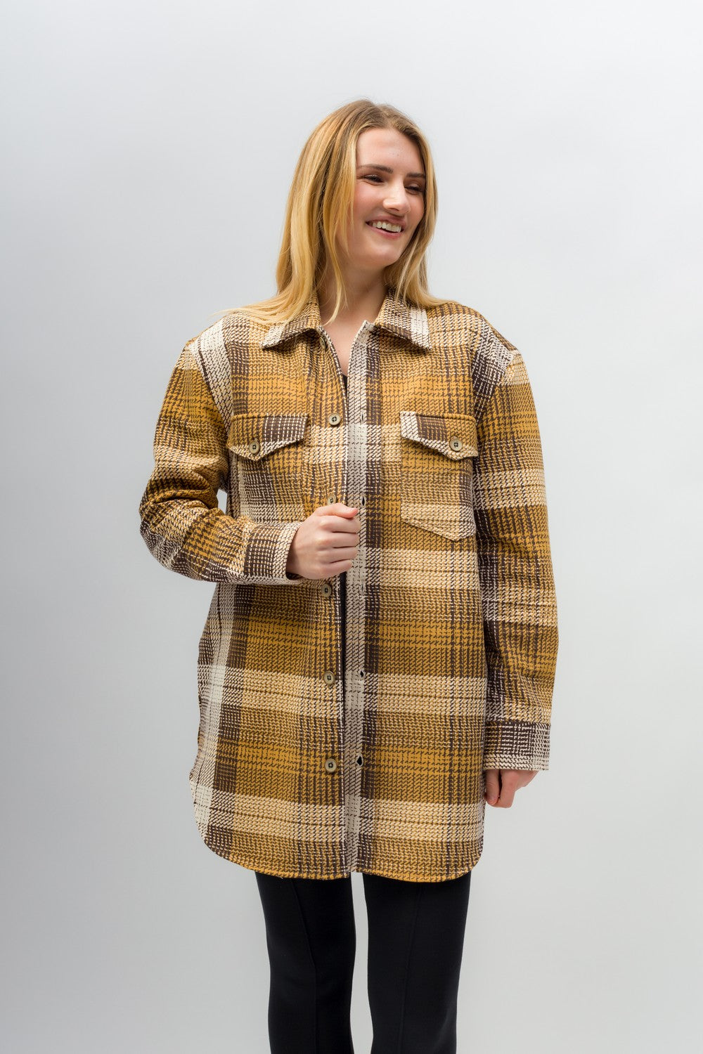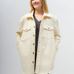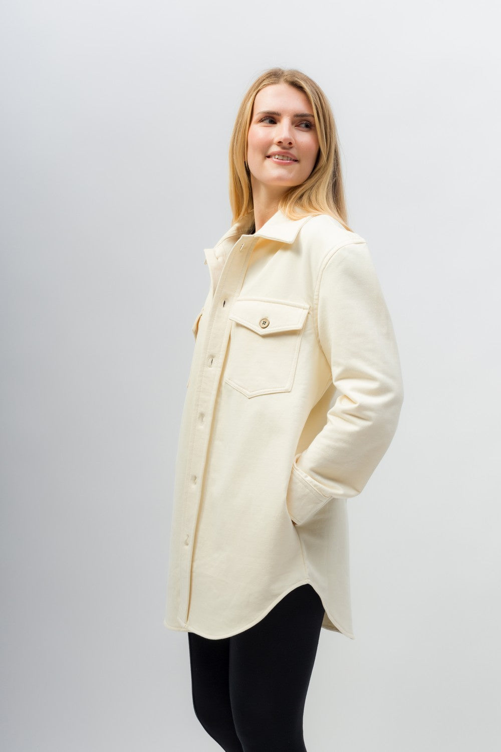 Cousin to the Gianna shirt jacket, the Pepper is a shorter version allowing for a more casual and varied look.  Oversized to wear as an outer layer, but brushed and soft enough to be worn as a shirt layer.  Two chest pockets and side seam waist pockets.