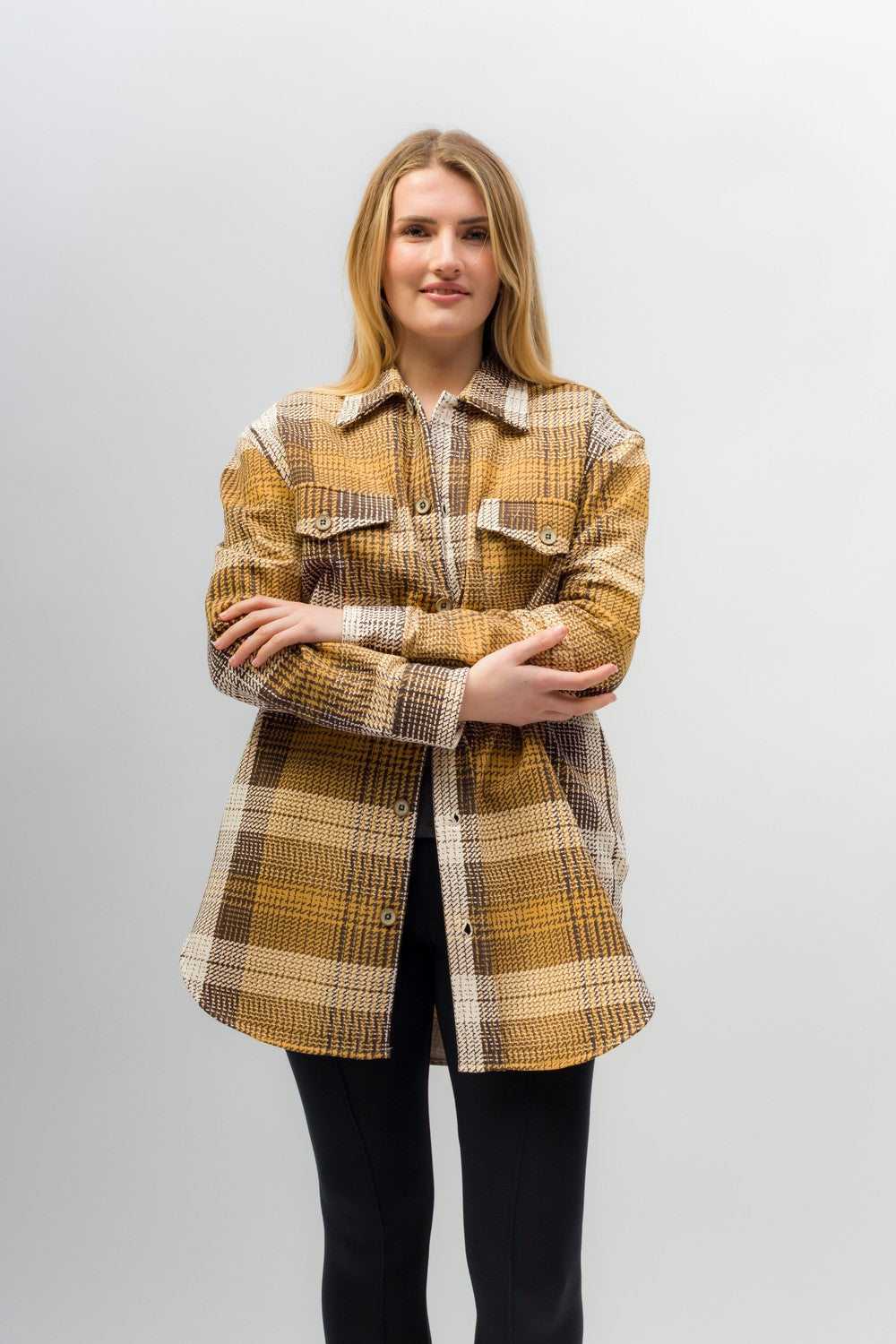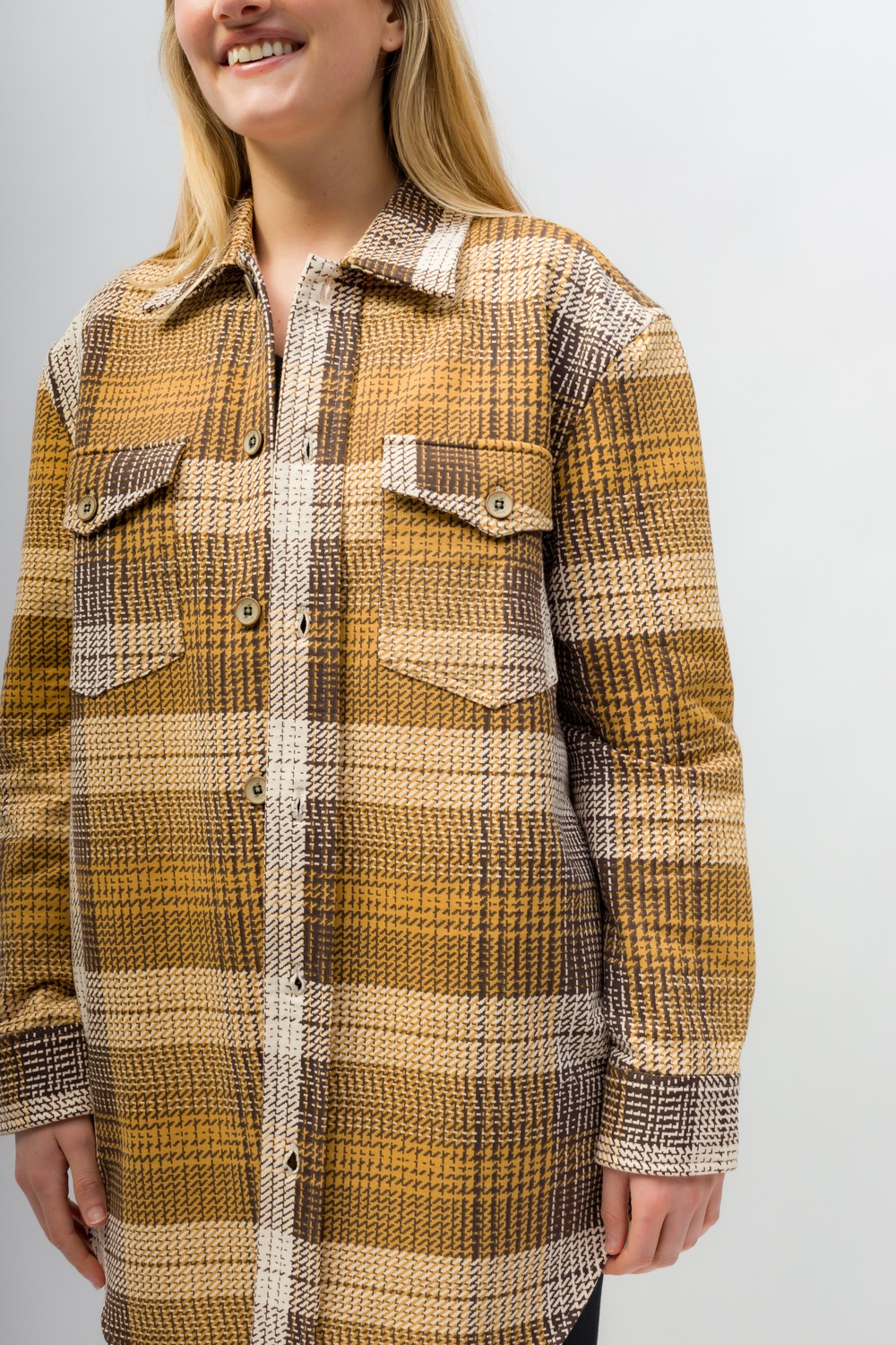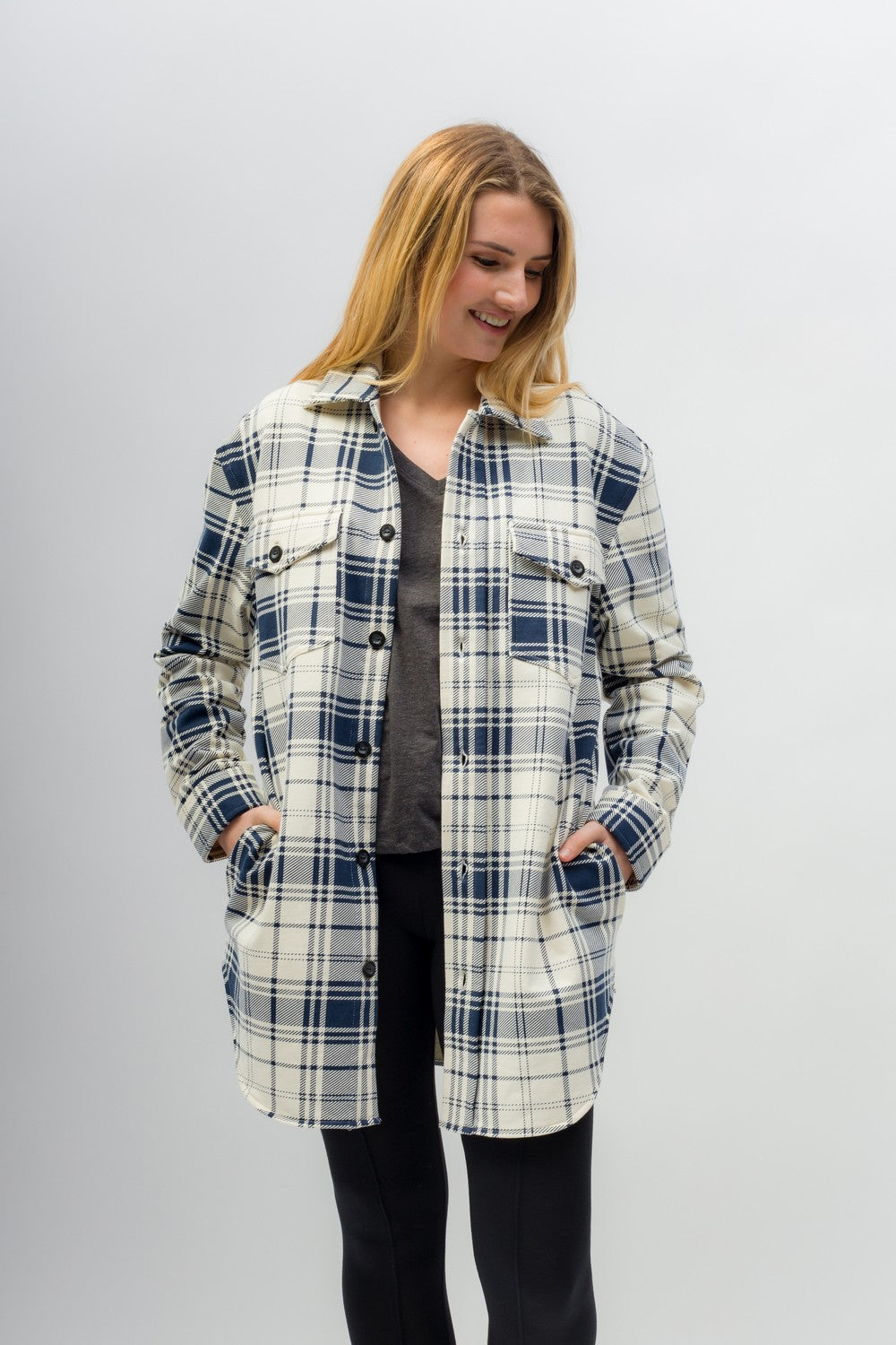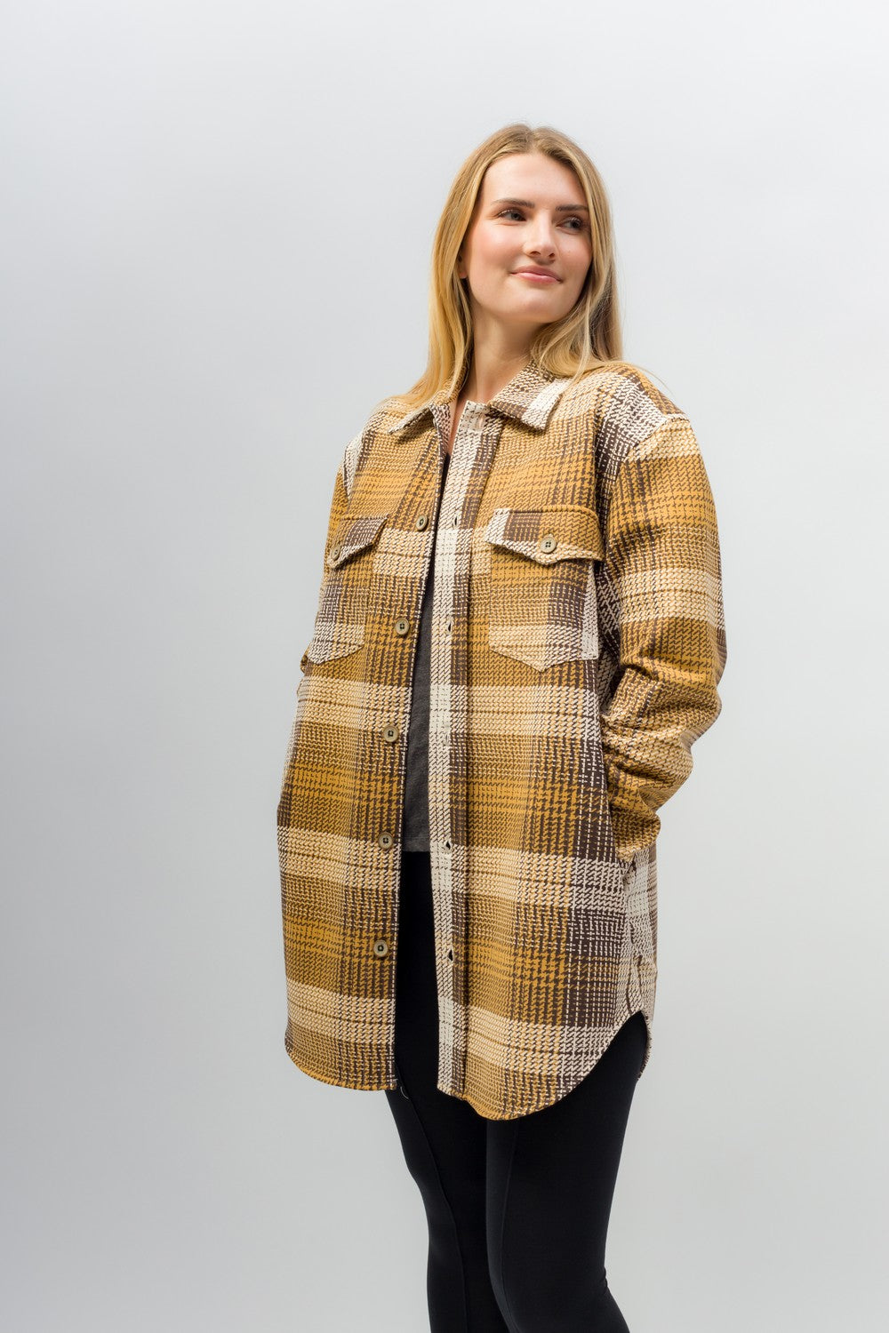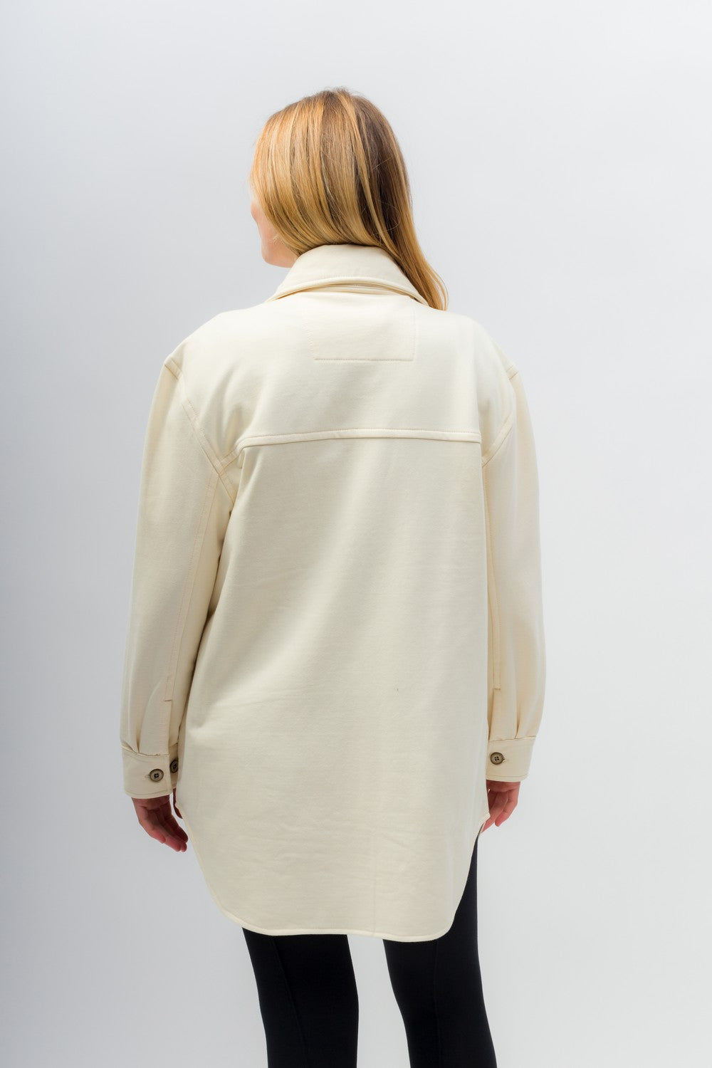 Cousin to the Gianna shirt jacket, the Pepper is a shorter version allowing for a more casual and varied look.  Oversized to wear as an outer layer, but brushed and soft enough to be worn as a shirt layer.  Two chest pockets and side seam waist pockets.