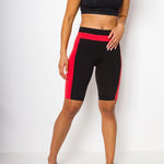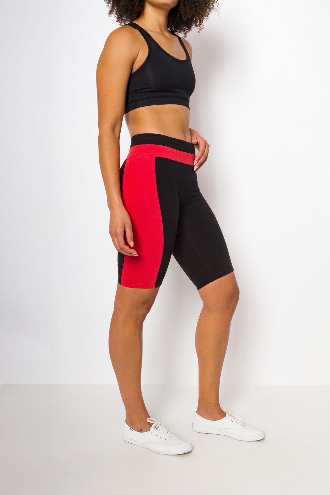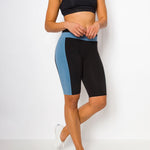 Add some color to your workout routine with the Sonia bike shorts. Black shorts featuring a flattering color block detail, these shorts are stretchy and squat proof. Mid-rise and knee length, these are sure to support you throughout your entire workout. Its Filium® activated fabric that will repel liquids, stains, and odors keeping you clean and fresh for days.