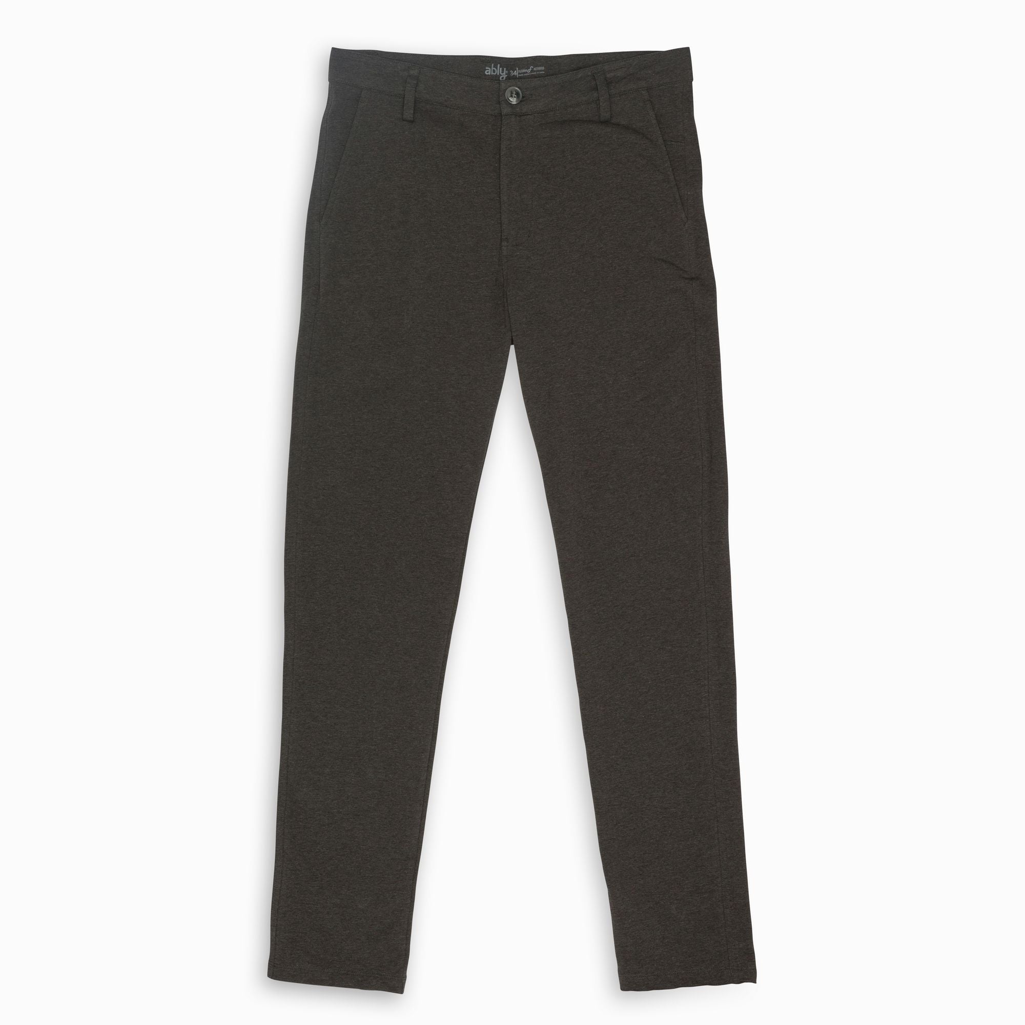 - 95% cotton / 5% spandex men's knit trousers.
