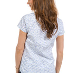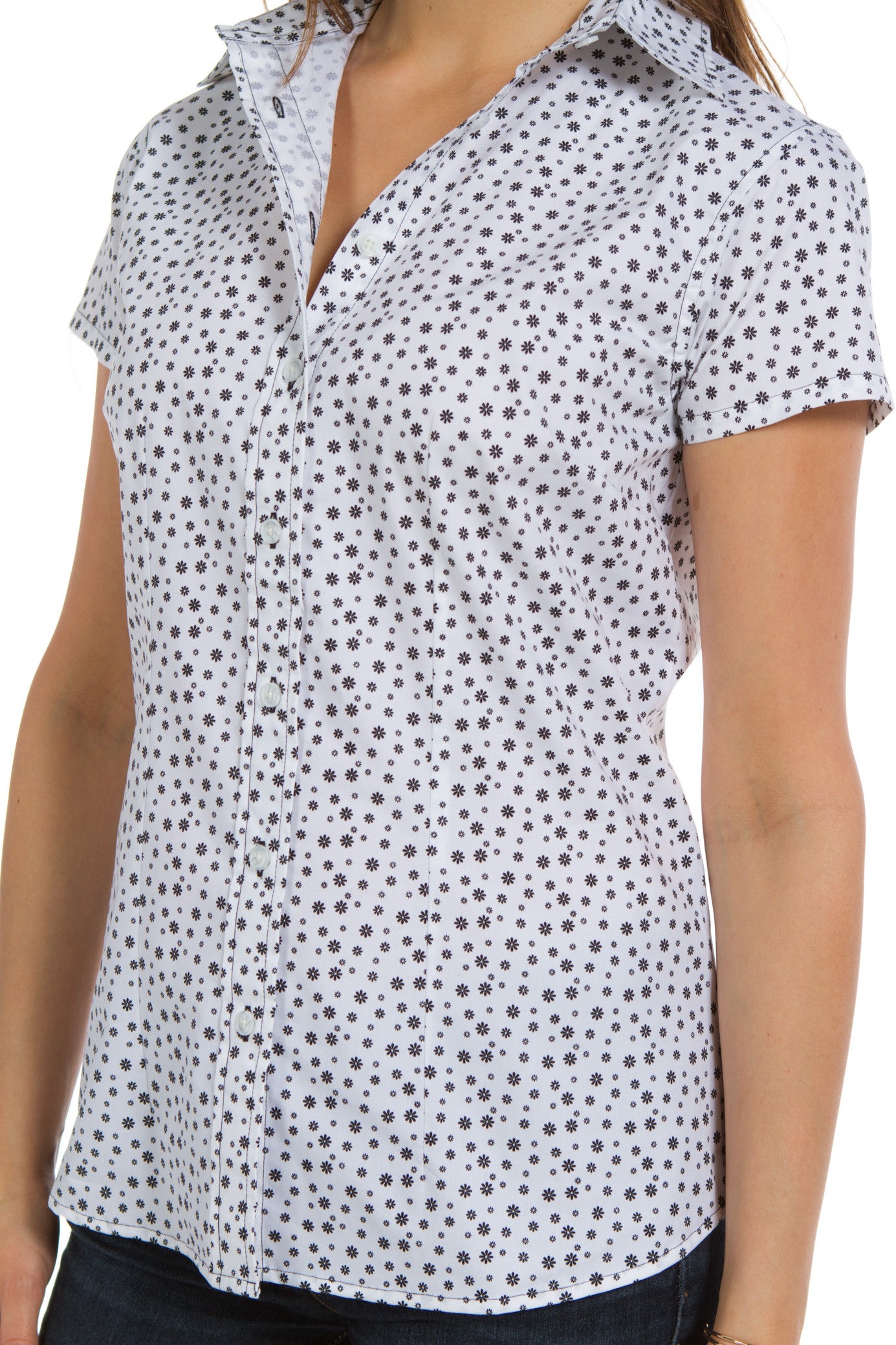 Add some print to your work wardrobe with the Jasmine printed top. With front darts for shaping and a capped sleeve, this is the perfect way to incorporate some color in the office. Pair it with our Danie linen shorts on the weekend, this top can be styled for a formal luncheon or a picnic in the park. Its Filium® activated fabric will repel liquids, stains, and odors keeping you clean and fresh for days.