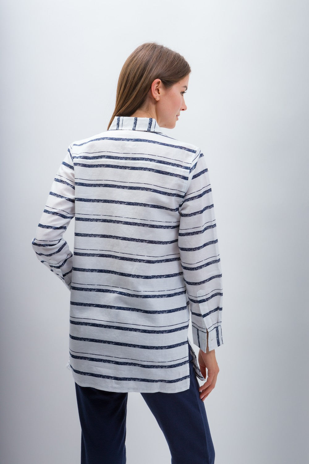 A 55% linen 45% cotton blend tunic styled woven top designed to be multifaceted for your busy life. To the office as your over layering piece, to the farm as a lightweight cover or to the beach as your after swim cover. Ruth has you covered along the entire route.
